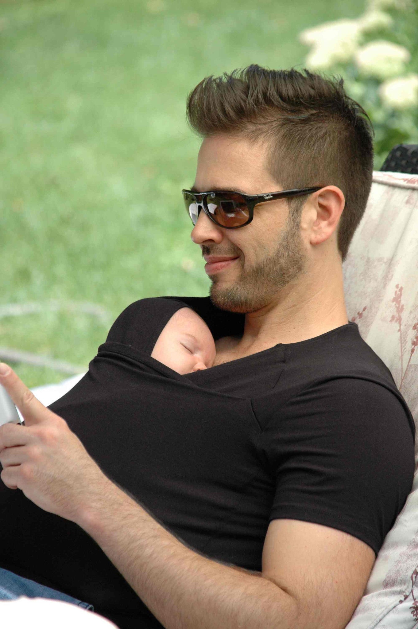 Designed to be a more masculine-looking t-shirt, this garment enables dads the opportunity to practice skin-to-skin contact with their babies. Can be used as hands-free support up to 20 pounds (9kg).