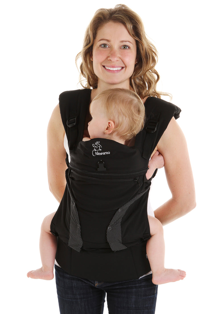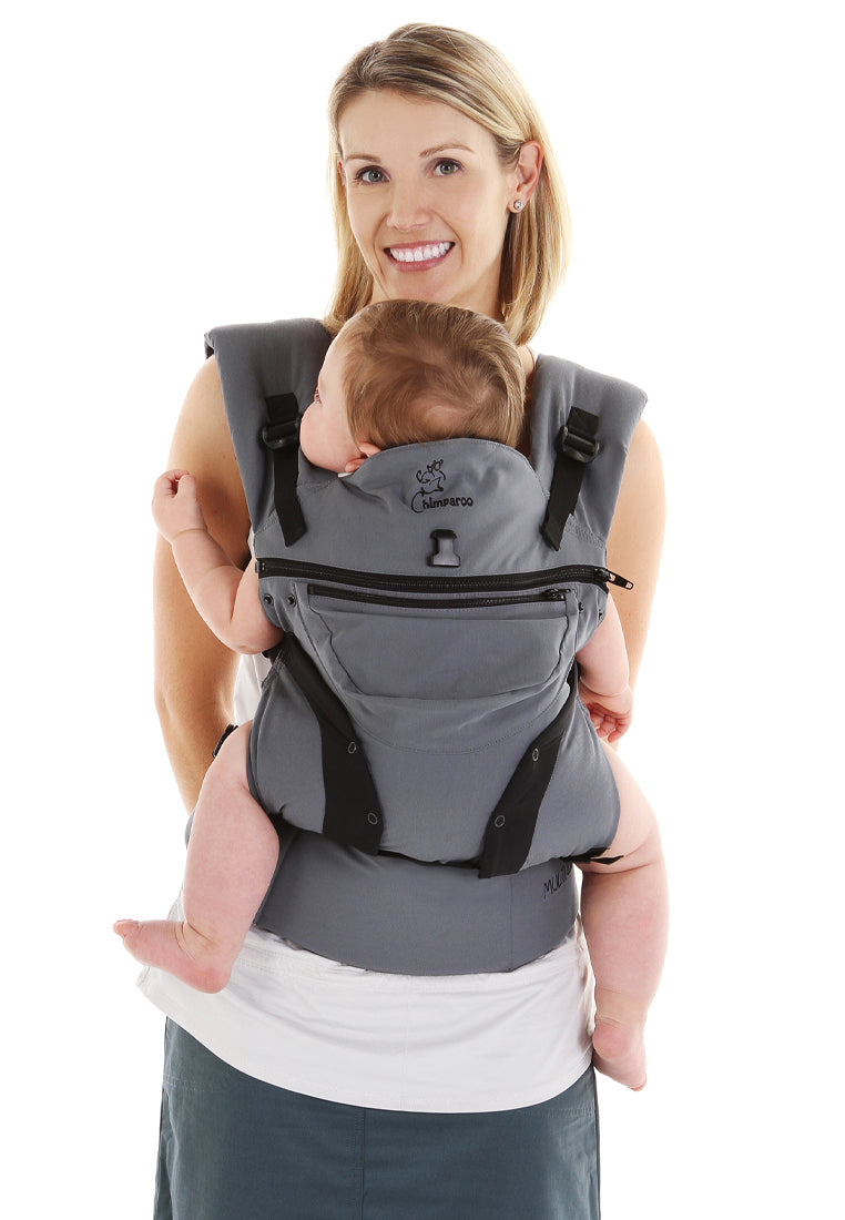 The Chimparoo MULTI 2.0 is Chimparoo's latest creation, and is the result of many efforts to offer a comprehensive baby carrier that responds to all your needs. Chimparoo's innovative design is patent-pending. Comfortable and ergonomic, it has 4 possible positions that can be used from birth until you no longer wear your child (7-45 lbs). Like all Chimparoo baby carriers, the MULTI’s design favours healthy spine and hip development no matter what position is used. It is the only carrier of its kind that provides adequate support to the thighs when baby is worn on the front facing out.